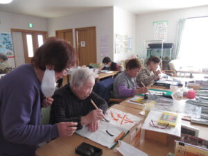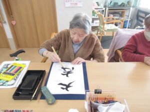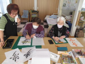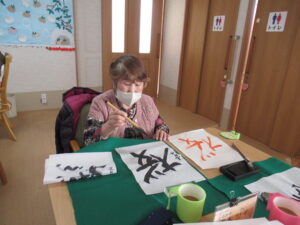 続いては、書初めの様子です。昔はその年の抱負や目標を定めたり、書の上達を願ったりする日本のお正月行事で、江戸時代に寺子屋を通じて庶民に広まり、1月2日に行われるのが通例になったと言われています。