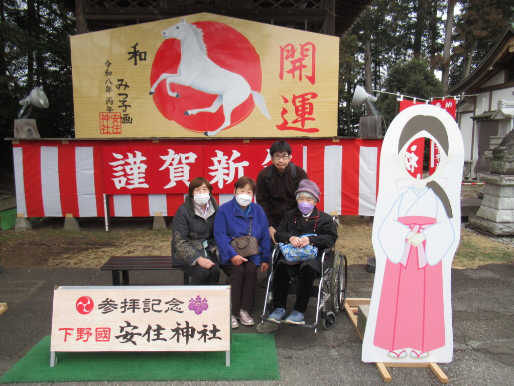 寒い日が続いていますが、通常通りの生活に戻りましたか?アクロスでは、新年の恒例行事、初詣と書初めを行いました。